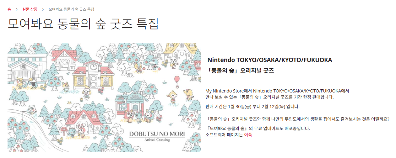 동물의 숲 팬이라면 놓칠 수 없는 소식이에요. My Nintendo Store에서 Nintendo TOKYO/OSAKA/KYOTO/FUKUOKA 매장 전용으로 판매되던 오리지널 굿즈를 온라인에서도 만날 수 있게 됐어요. 1월 30일(금)부터 2월 12일(목)까지 단 2주간 기간 한정 판매되니, 관심 있는 분들은 공식 홈페이지에서 재고와 배송 정보를 미리 확인하는 걸 추천해요. 방문·구매 전 공식 홈페이지/SNS/판매 페이지에서 최신 정보를 반드시 확인하세요.
