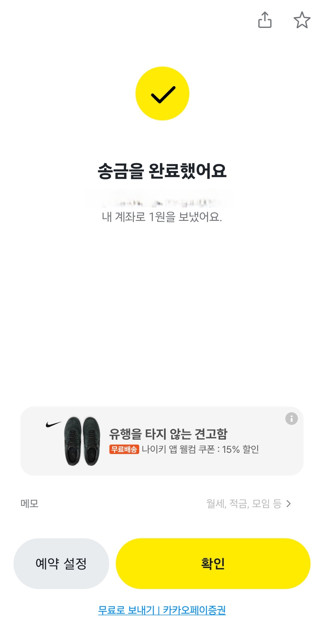 - 소요 시간: 송금 버튼을 누르고 비밀번호를 입력하면, 1초도 걸리지 않아 즉시 내 통장으로 입금 처리된다.